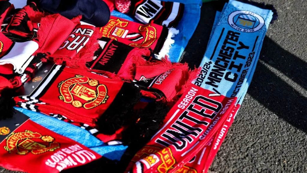 Manchester United fans tried to spark controversy ahead of the Manchester derby with “115” scarves ahead of their derby as City struggles over potential FFP punishments.